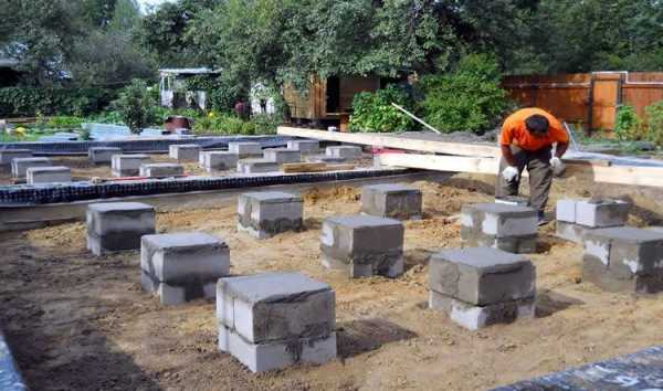 Простым и менее затратным с точки зрения материалов и физических усилий является столбчатый фундамент веранды. Он представляет собой несколько отдельных опор прямоугольного сечения в горизонтальной плоскости. Для изготовления используют следующие материалы: