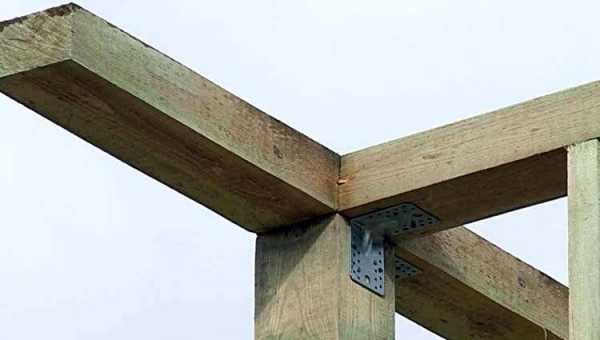 Верхняя обвязка веранды со стропильной системой делаются на стойках. В качестве последних может выступать пара досок с прокладкой или цельные бруски. Фиксация стропил достигается благодаря горизонтально расположенной балке под скатом крыши. Крепление стоек с балками осуществляется анкерными болтами.