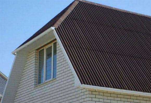Представляет собой конструкцию, которая образована из двух пологих скатов, смыкающихся на вершине и еще двух крутых скатов, которые продолжают первые. За счет такой формы появляется возможность использовать пространство чердака и превратить его в жилую комнату. Для сооружения мансардной крыши используются висячие стропила, которые обеспечивают пустоту в средней части помещения.