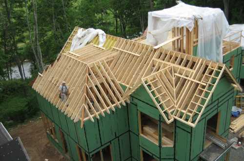 Единственный минус, который выделяют у полувальмы — это сложность монтажа. Для ее возведения необходимо большое количество разных элементов, крепежа и древесного материала для создания стропил. Без определенных навыков и опыта проектирования и сборки построить такую разновидность крыши практически невозможно.