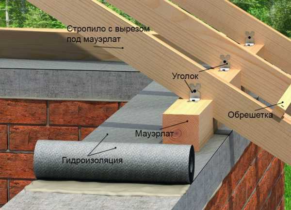 - мауэрлат – нижняя опорная балка для стропил;