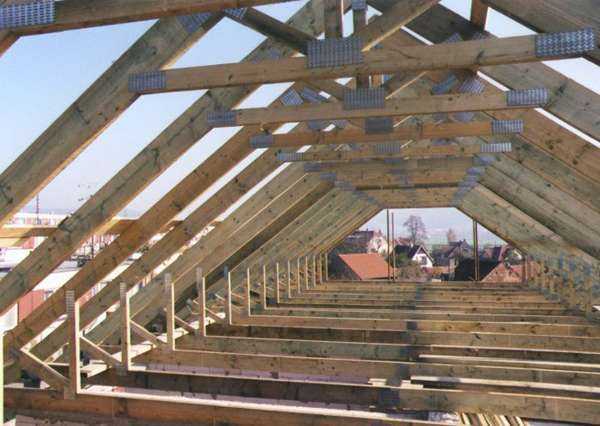 Благодаря этому, несущая способность накосных стропил увеличивается, что позволяет использовать длинные целые балки для очень больших крыш. Кроме того, для диагональных и рядовых стропил могут использоваться одни и те же доски, что дает возможность облегчить процесс работы.