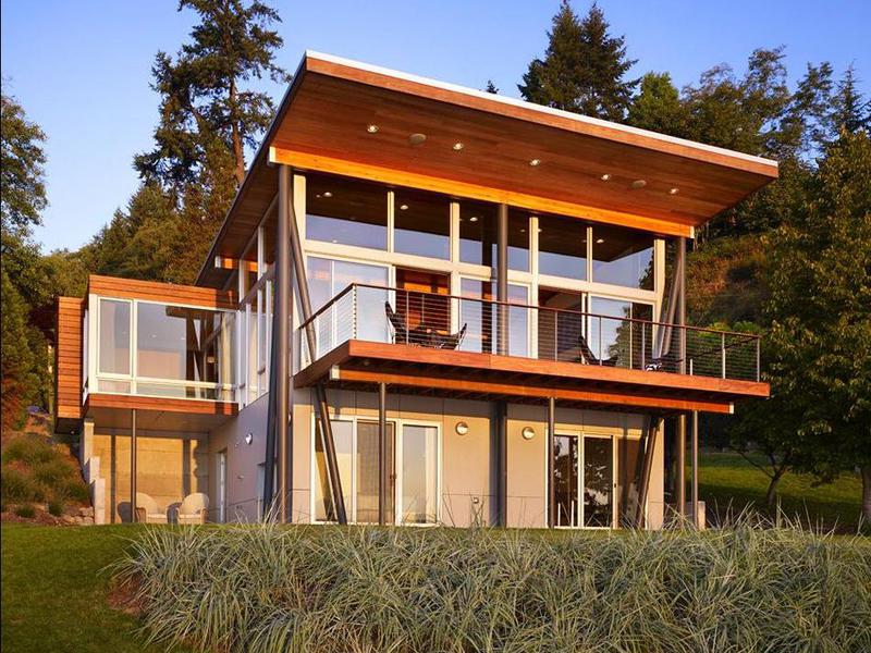 Дом с односкатной крышей, который построен на берегу озераЕсли вы решили выбрать дом с односкатной крышей, то необходимо очень серьёзно подойти к выбору конкретного вида крыши – от этого зависит многое. Поэтому узнать побольше о разных видах односкатных крыш будет очень полезно.