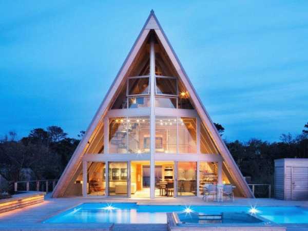 Оригинально смотрится крыша с тремя скатами, когда два из них соединяются в одном коньке, а третий скат — равносторонний треугольник крепится к этой конструкции. В этом случае важно учесть ветровую нагрузку.