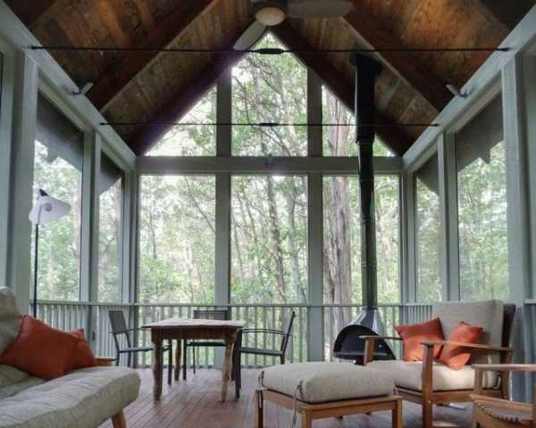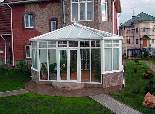 Уместно смотрится трёхскатная крыша и над террасой. Особенностью данной постройки является наличие застеклённой стенки. Но сам процесс возведения крыши ничем не отличается от монтажа крыши на доме.