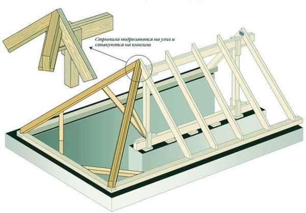 Дополнительные два ската собираются из наслонных стропил, уложенных на вальмовые стропила. Четырехскатные конструкции могут состоять из пары трапециевидных скатов и двух треугольных вальм. Этот вариант подойдет для местности с большим количеством осадков и достаточно низкими температурами в зимнее время