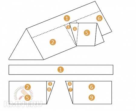 Там, где скаты не прямоугольные, требуется правильная раскройка листа. Для этого применяется шаблон, сделанный из 4-х досок, скрепленных по углам так, чтобы полученный четырехугольник мог свободно деформироваться — так называемый черток: