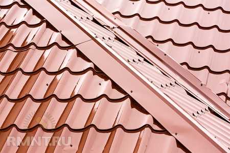 Важно! Из-за того, что поверхность кровельного листа является профилированной, потребуется правильно подобрать угол наклона, чтобы косые дожди не проникли под коньковую накладку.