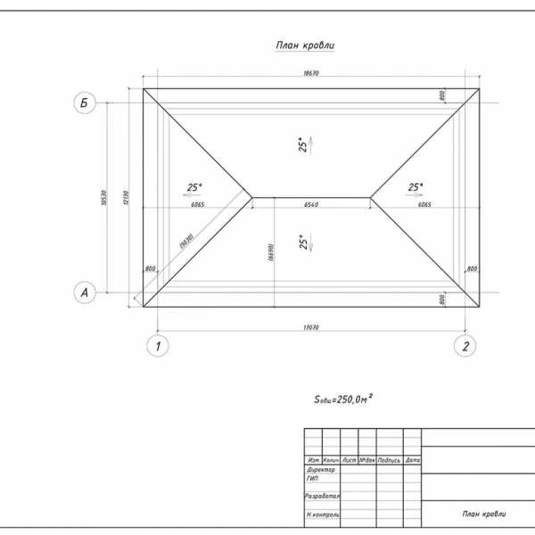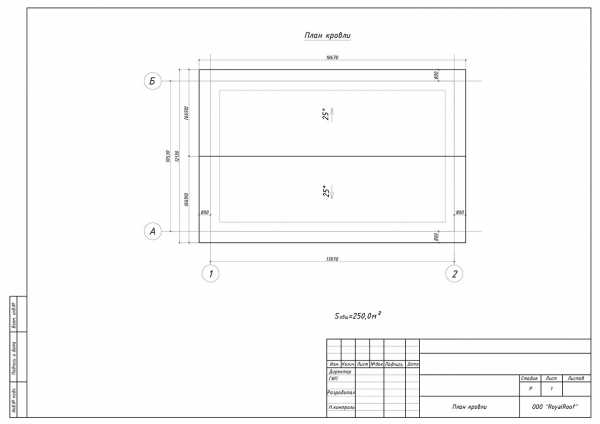 Расчетная площадь крыши (в обоих вариантах исполнения) — 250 кв. м.