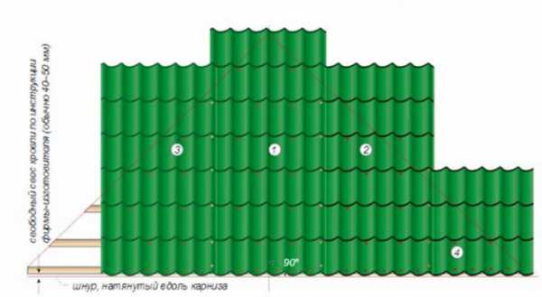 Совет: если проводится устройство металлочерепицы по шатровой крыше дома, то монтаж профиля начинают с верхнего пика ската по обе его стороны. В остальных случаях крыша из металлочерепицы кладется снизу, справа налево по принципу укладки стандартного шифера. Такое покрытие крыши будет прочным.