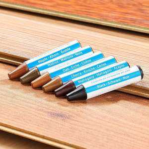 В случаях таких поверхностных повреждений также часто используется восковый карандаш. Цветовая палитра таких карандашей весьма разнообразна, так как в случае неглубокого повреждения идеального цветового совпадение не требуется.