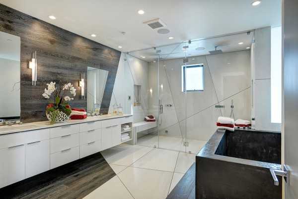 - несмотря на влагостойкие свойства ламината, его нежелательно использовать в душевой. Возможно использование при отделке какой-либо стены в ванной комнате, но при условии, что она просторная и оснащена мощной вытяжкой, чтобы не образовывалась повышенная влажность в помещении;