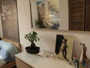 Кстати, ламинат на стене в спальне станет отличной основой для картин и фотографий и придаст домашнего уюта обстановке. Если вы придерживаетесь современных направлений, можете выполнить переход ламината со стен на потолок.