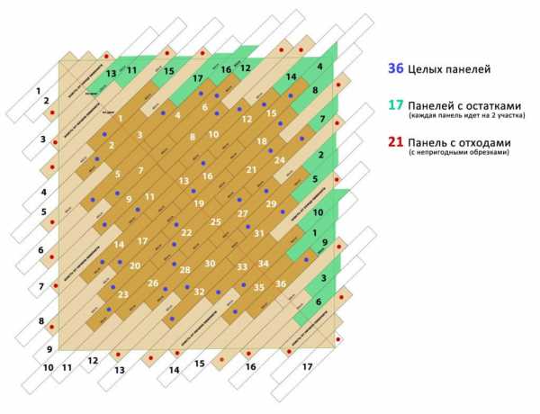 Способ укладки на только определяет расположение ламелей, но влияет на общий расход материала