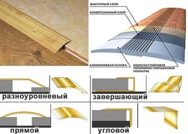 - выравнивающие пороги позволяют замаскировать перепад по высоте на 3-18 мм;