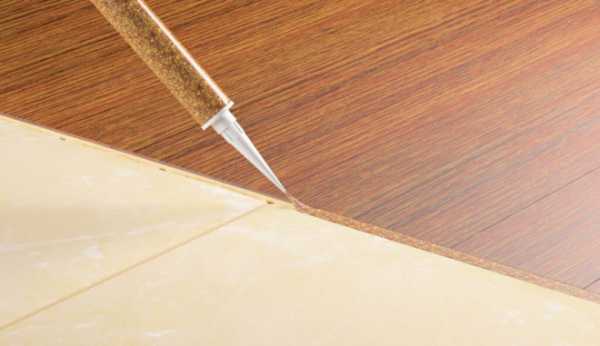 Какой бы материал не использовали для уплотнения, край ламината, к нему примыкающий, обязательно обрабатывать защитным составом, который предупреждает всасывание влаги. Чаще всего для этого используется герметик. Лучше — силиконовый, который после высыхания не теряет эластичности и не желтеет со временем.