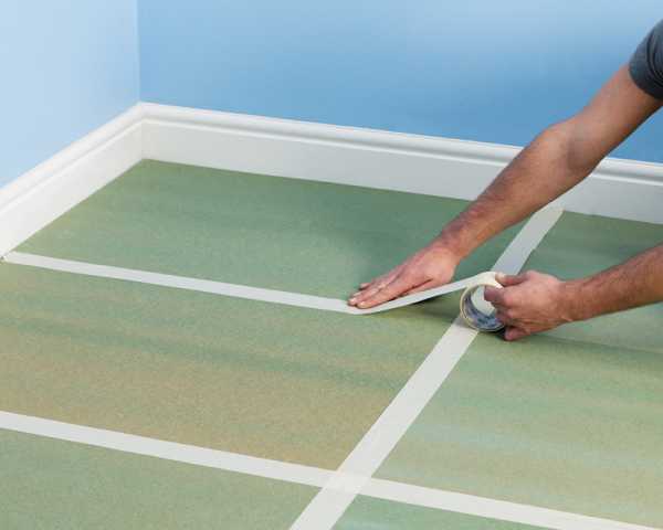 Под ламинат нужно также уложить подложку. Её необходимо закрепить на основании малярным скотчем, чтобы предотвратить скольжение во время монтажа ламелей. Листы подложки укладываются строго встык.