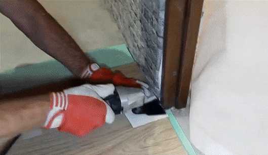 Стоит отдельно поговорить об устройстве дверных проёмов. Вы должны вырезать панель таким образом, чтобы она плотно входила между двух косяков (прочитайте: «Чем резать ламинат в домашних условиях: инструменты и методы»). В некоторых случаях необходимо использовать соединительные планки, о которых подробно можно прочитать на нашем сайте.