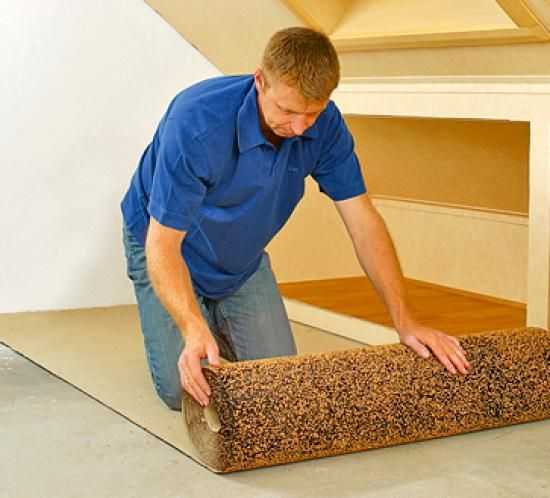 Пол должен быть сухим, чистым и ровным. Для качественной укладки на бетон необходимо приобрести специальную пленку для пароизоляции и подложку толщиной 2-3 мм.