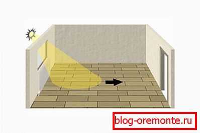 Расположение ламината относительно окна