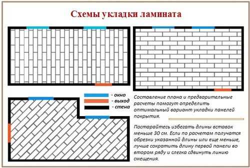 Обратите внимание! Прежде чем определиться с направлением укладки ламината, разложите его пластины вплотную друг к другу сначала поперек помещения, а затем вдоль. Окончательно выбирайте тот вариант, при котором от крайних пластин ламината вдоль них придется меньше всего отрезать лишнего, либо обрезанные пластины будут спрятаны под мебелью.
