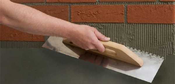 - Клей наносится не на всю поверхность, а на отдельные расчерченные зоны, составляющие около 1000×500 мм. Слой клеевой массы должен составлять примерно 2÷3 мм – он наносится с помощью ровного шпателя, а затем распределяется по всей подлежащей облицовке области зубчатым шпателем, чтобы получились борозды одинаковой высоты.