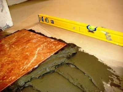 - Керамическая плитка и линолеум, правильно уложенные по технологии, не требует никаких действий, помимо настила подложки. Если плитка уложена не ровно, демонтируйте ее.