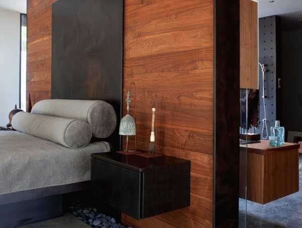 Наиболее часто ламинат в спальне используется для оформления стены у изголовья кроватиК сожалению, у многих нет разделения на гостиную и спальню. Такая проблема знакома многим жителям небольших однокомнатных квартир, общая площадь которых не превышает и 30 кв. м. Именно тут с помощью ламината получается наиболее лучше выделить разные зоны.