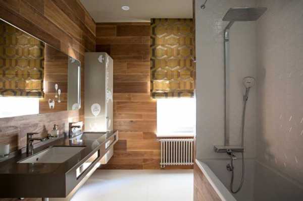 Итак, чтобы создать гармоничный дизайн уходим от приевшихся и не совсем выгодных материалов, например, ПВХ панели (пусть остаются для ванны). Мы же хотим современного дизайна без запаха дешевизны, поэтому говорим «Да!» ламинату и пойдем его крепить на стену. Но, для начала нужно описать несколько нюансов и плюсов работы с этим материалом.