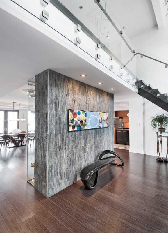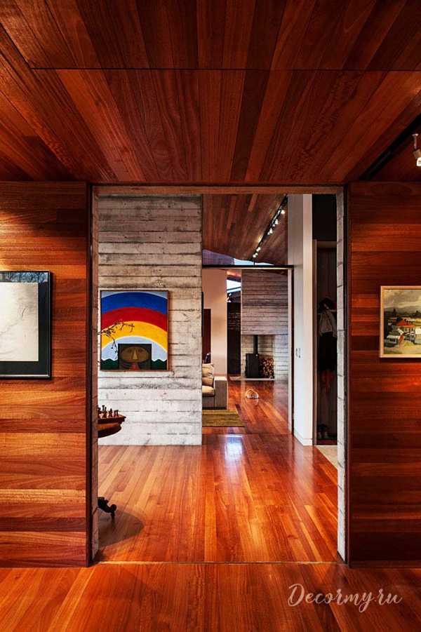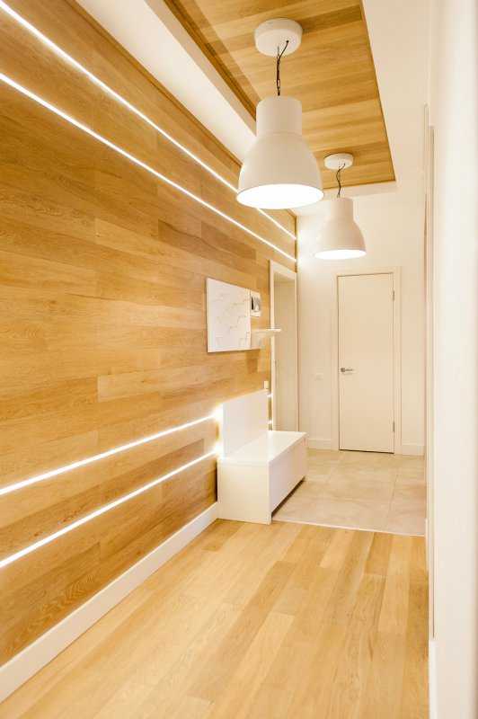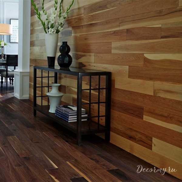 Вертикальное разделение отделки стенТакая отделка не побоится ни следов от колес коляски или велосипеда, а какой создаст уют, представляете? Заходите домой, включаете свет, который освещает природную структуру дерева спокойных и приятных глазу оттенков.