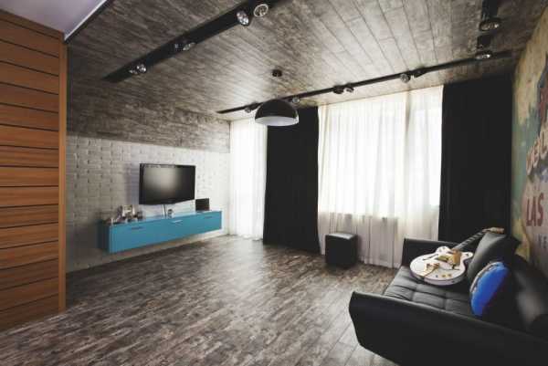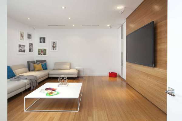 Это место, где собирается вся семья: общается, смотрит фильмы, развлекается при помощи разных игр — в общем, весело и продуктивно проводит время. Такую трогательную семейную гармонию обязательно надо поддержать использованием теплых и приятных оттенков ламината.