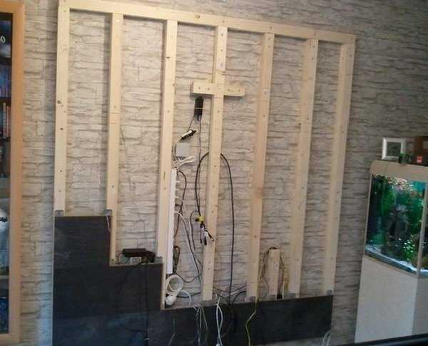 Место для проводкиУровнем необходимо проверить ровность стены. На неровную доска, естественно, не ляжет и будут щели. Думаю, что это всем и так ясно.