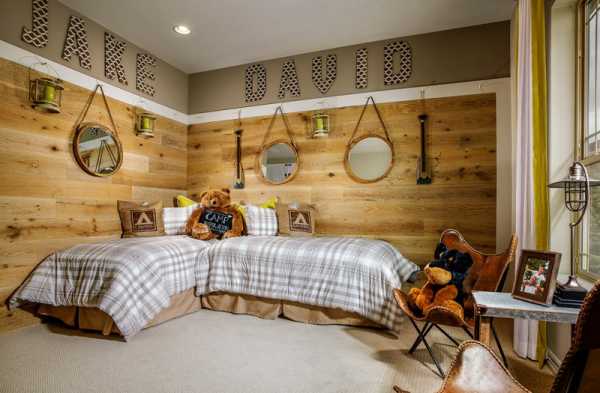Детская спальня с ламинатом на стене в скандинавском стиле
