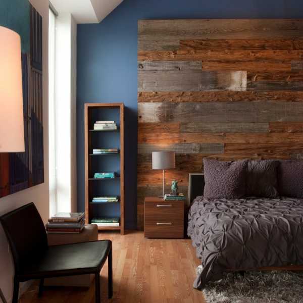 Красивый ламинат на стене украсит любую спальню