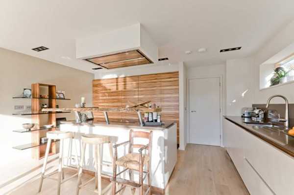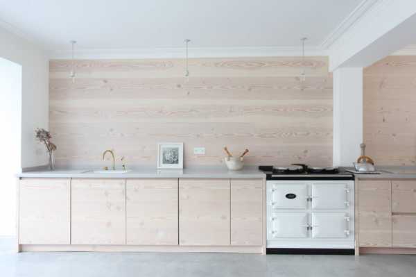 Светлый ламинат на стенеКухонный гарнитур природных оттенков отлично подчеркнет всю оригинальность дизайна.