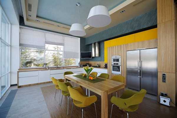Фартук из ламината до потолкаЕго также кладут до потолка или выделяют только фартучную зону. Могут зонировать таким образом столовую или место обеденного стола. Вариантов много.