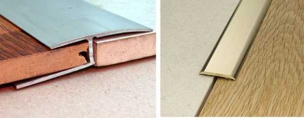 Два вида оформления места соединения плитки и ламината — с порожком и без