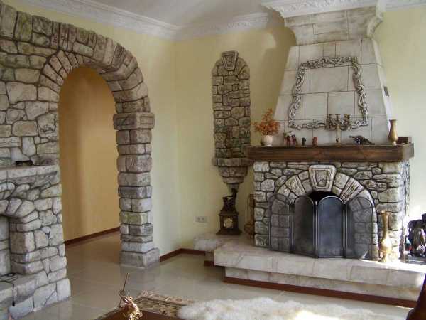 Π₯ΠΎΡΠΎΡΠΈΠΌ Π²Π°ΡΠΈΠ°Π½ΡΠΎΠΌ ΡΡΠ°Π½Π΅Ρ ΠΎΡΠ΄Π΅Π»ΠΊΠ° ΡΠ°Π±ΠΎΡΠ΅ΠΉ Π·ΠΎΠ½Ρ ΠΊΡΡ Π½ΠΈ, Π»Π΅ΡΡΠ½ΠΈΡΠ½ΡΡ ΠΌΠ°ΡΡΠ΅ΠΉ, Π²ΡΡΡΡΠΏΠ°ΡΡΠΈΡ ΡΠ»Π΅ΠΌΠ΅Π½ΡΠΎΠ² (ΠΏΠΈΠ»ΡΡΡΡ ΠΈ ΠΊΠΎΠ»ΠΎΠ½Π½). ΠΠ»ΠΈΡΠΊΠ° ΠΏΠΎΠ΄ ΠΏΡΠΈΡΠΎΠ΄Π½ΡΠΉ ΠΊΠ°ΠΌΠ΅Π½Ρ ΡΠ΄Π΅Π»Π°Π΅Ρ Π³ΠΎΡΡΠΈΠ½ΡΡ Π±ΠΎΠ»Π΅Π΅ ΠΎΠΆΠΈΠ²Π»Π΅Π½Π½ΠΎΠΉ ΠΈ ΡΡΠΈΠ»ΡΠ½ΠΎΠΉ, Π΅ΡΠ»ΠΈ Π΅Ρ ΠΎΡΠ΄Π΅Π»Π°ΡΡ Π΄Π²Π΅ΡΠ½ΡΠ΅ ΠΈ ΠΎΠΊΠΎΠ½Π½ΡΠ΅ ΠΏΡΠΎΠ΅ΠΌΡ, ΠΌΠ΅ΡΡΠΎ Π·Π° Π΄ΠΈΠ²Π°Π½ΠΎΠΌ, ΠΎΠ±Π»ΠΈΡΠ΅Π²Π°ΡΡ ΠΊΠ°ΠΌΠΈΠ½ ΠΈ Π·ΠΎΠ½Ρ Β«ΠΆΠΈΠ²ΠΎΠ³ΠΎ ΡΠ³ΠΎΠ»ΠΊΠ°Β». Π‘Π°ΠΌΠΎΠ΅ ΠΎΡΠ½ΠΎΠ²Π½ΠΎΠ΅ β Π½Π΅ ΠΏΠ΅ΡΠ΅ΡΡΠ΅ΡΠ΄ΡΡΠ²ΠΎΠ²Π°ΡΡ, Π·Π°ΠΊΡΡΠ²Π°Ρ ΠΏΠ»ΠΈΡΠΊΠΎΠΉ Π²ΡΠ΅ ΡΡΠ΅Π½Ρ ΠΈ ΠΏΠΎΡΠΎΠ»ΠΎΠΊ, ΠΏΡΠ΅Π²ΡΠ°ΡΠ°Ρ ΠΏΠΎΠΌΠ΅ΡΠ΅Π½ΠΈΠ΅ Π² ΠΆΠΈΠ»ΠΈΡΠ΅ Π³Π½ΠΎΠΌΠΎΠ², Π½ΠΎ ΠΈ ΡΡΠΎΡ Π²Π°ΡΠΈΠ°Π½Ρ ΠΈΠΌΠ΅Π΅Ρ ΠΌΠ΅ΡΡΠΎ ΠΈ Π±ΡΠ΄Π΅Ρ ΠΎΡΠ΅Π½Ρ ΠΎΡΠΈΠ³ΠΈΠ½Π°Π»Π΅Π½ Π΄Π»Ρ ΡΠ΅ΡΡΠΎΡΠ°Π½ΠΎΠ² ΠΈ Π±Π°ΡΠΎΠ².