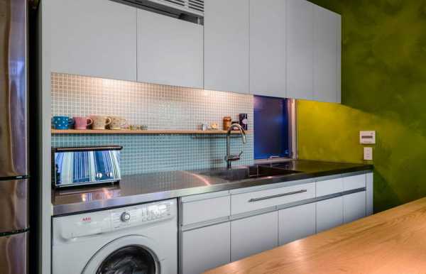 Казалось бы, не самое практичное и очевидное решение для кухонного фартука. Однако в сочетании со стеклом такая отделка становится оригинальной, функциональной – и открывает простор новым дизайнерским решениям.