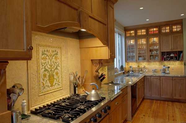 Выкладывать фартук на кухне с декором сложнее, но для опытного мастера это не станет проблемой.