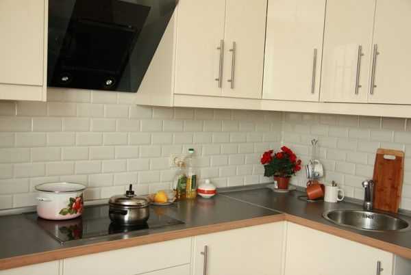 На фото – плиточное оформление под кирпич в отделке фартука.
