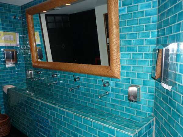 Интересная комбинация кафеля с применением цветной затирки.