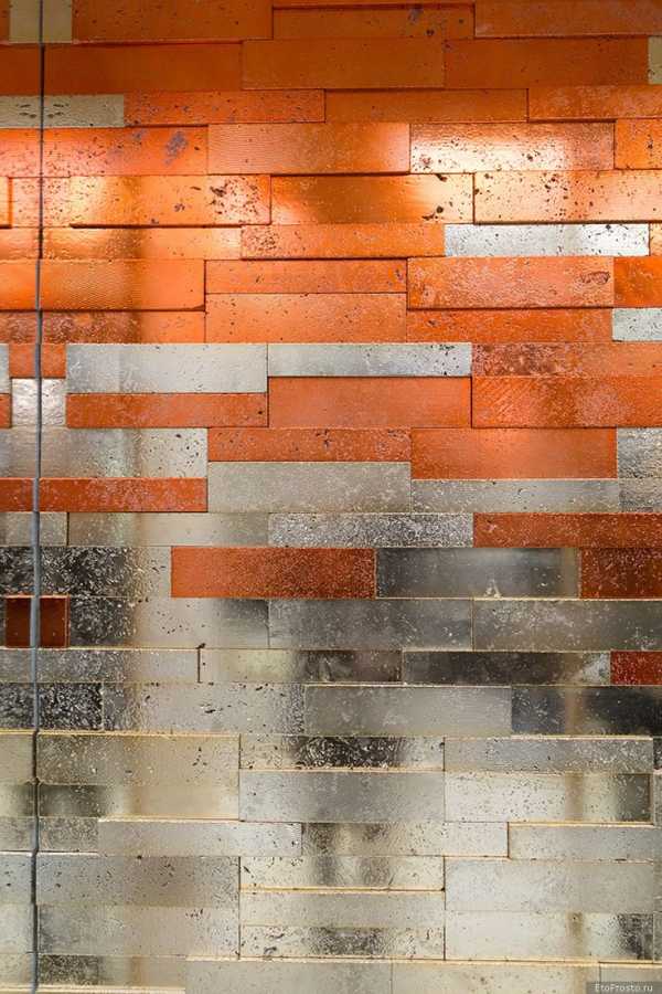 Фактурная плитка под кирпич разных цветов.