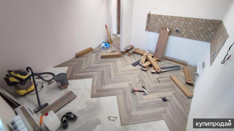 Arbeit Einer Schwimmenden Fußbodenininstallation — Verlegung von laminat auf dem boden — виниловый настил.