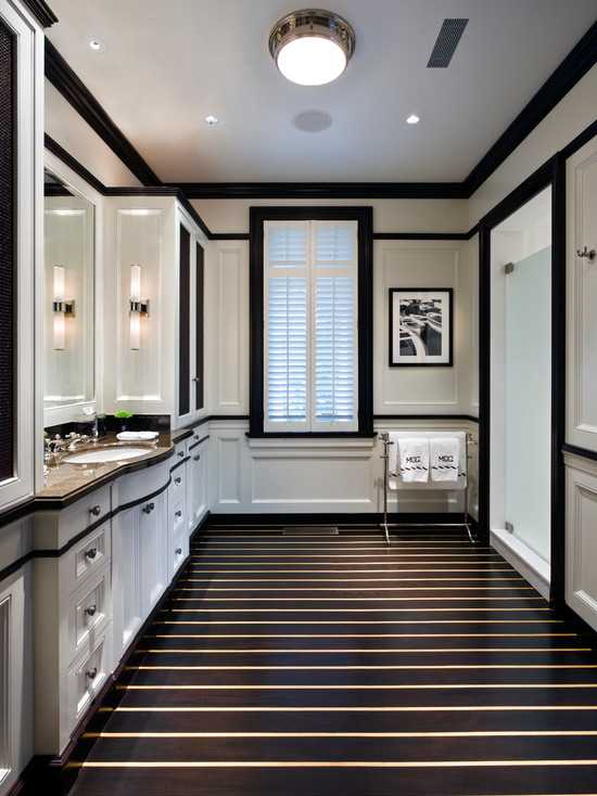 ΠΠΎ ΡΡΡΠΈ, ΠΎΡΠΎΠ±Π΅Π½Π½ΠΎΡΡΡ ΡΠ°ΠΊΠΎΠ³ΠΎ Π²Π°ΡΠΈΠ°Π½ΡΠ° ΡΠΊΠ»Π°Π΄ΠΊΠΈ Π»ΠΈΡΡ ΠΎΠ΄Π½Π°: Π·Π° ΡΡΠ΅Ρ Π΄Π΅ΠΊΠΎΡΠ°ΡΠΈΠ²Π½ΠΎΠΉ ΡΠ΅ΡΠ΅Π΄ΠΈΠ½Ρ ΠΈ ΡΠΎΡΠ΅ΡΠ°Π½ΠΈΡ Β«ΡΠΊΠΎΠ»ΡΠ½ΡΡ Β» ΡΠ²Π΅ΡΠΎΠ² (ΡΠ²Π΅ΡΠ»ΡΠΉ Π²Π΅ΡΡ , ΡΠ΅ΠΌΠ½ΡΠΉ Π½ΠΈΠ·), Π²ΠΈΠ·ΡΠ°Π»ΡΠ½ΠΎΠ΅ ΠΏΡΠΎΡΡΡΠ°Π½ΡΡΠ²ΠΎ ΡΡΡΠ΅ΡΡΠ²Π΅Π½Π½ΠΎ ΡΠΌΠ΅Π½ΡΡΠΈΡΡΡ. ΠΡΠ»ΠΈ Π²Π°Π½Π½Π°Ρ ΠΊΠΎΠΌΠ½Π°ΡΠ° Π΄ΠΎΠ²ΠΎΠ»ΡΠ½ΠΎ Π²Π½ΡΡΠΈΡΠ΅Π»ΡΠ½ΡΡ ΡΠ°Π·ΠΌΠ΅ΡΠΎΠ², ΡΠΎ Π½Π΅Π²Π΅Π»ΠΈΠΊΠ° Π±Π΅Π΄Π°. ΠΠΎ Π²ΠΎΡ Π΅ΡΠ»ΠΈ ΠΏΠΎΠΌΠ΅ΡΠ΅Π½ΠΈΠ΅ ΠΈ Π±Π΅Π· ΡΠΎΠ³ΠΎ Π½Π΅ ΡΠ»ΠΈΡΠΊΠΎΠΌ Π²ΠΌΠ΅ΡΡΠΈΡΠ΅Π»ΡΠ½ΠΎΠ΅, ΠΏΠΎΡΠ»Π΅ ΡΠ°ΠΊΠΎΠΉ ΠΎΡΠ΄Π΅Π»ΠΊΠΈ ΠΎΠ½ΠΎ Π²ΠΎΠ²ΡΠ΅ ΡΡΠ°Π½Π΅Ρ ΠΊΠ°Π·Π°ΡΡΡΡ ΠΌΠΈΠ½ΠΈΠ°ΡΡΡΠ½ΡΠΌ. Π§ΡΠΎΠ±Ρ ΡΠΎΠΊΡΠ°ΡΠΈΡΡ Π½Π΅ΠΆΠ΅Π»Π°ΡΠ΅Π»ΡΠ½ΡΠΉ ΡΡΡΠ΅ΠΊΡ ΠΎΡ ΡΠ°ΠΊΠΎΠ³ΠΎ Π΄ΠΈΠ·Π°ΠΉΠ½Π΅ΡΡΠΊΠΎΠ³ΠΎ ΡΠ΅ΡΠ΅Π½ΠΈΡ, ΡΠ΅ΠΊΠΎΠΌΠ΅Π½Π΄ΡΠ΅ΡΡΡ Π²ΡΠ΄Π΅Π»ΠΈΡΡ Π²Π΅ΡΡΠΈΠΊΠ°Π»ΡΠ½ΡΠ΅ ΠΏΠΎΠ»ΠΎΡΡ. ΠΠ°ΠΏΡΠΈΠΌΠ΅Ρ, ΠΎΠ±ΡΠΈΡΠΎΠ²Π°ΡΡ Π·ΠΎΠ½Ρ ΡΠΌΡΠ²Π°Π»ΡΠ½ΠΈΠΊΠ° ΠΈΠ»ΠΈ Π±ΡΠ΄ΡΡΠ΅Π³ΠΎ ΡΠ°ΡΠΏΠΎΠ»ΠΎΠΆΠ΅Π½ΠΈΡ ΡΡΠΈΡΠ°Π»ΡΠ½ΠΎΠΉ ΠΌΠ°ΡΠΈΠ½Ρ ΡΡΠΊΠΎΠΉ ΠΏΠΎΠ»ΠΎΡΠΊΠΎΠΉ ΠΎΡ ΠΏΠΎΡΠΎΠ»ΠΊΠ° Π΄ΠΎ ΠΏΠΎΠ»Π°. ΠΠ½Π° Π·ΡΠΈΡΠ΅Π»ΡΠ½ΠΎ ΡΠΊΡΠ°ΡΠΈΡ ΠΈΠ½ΡΠ΅ΡΡΠ΅Ρ, ΠΏΡΠΈΠ΄Π°ΡΡ ΠΏΠΎΠΌΠ΅ΡΠ΅Π½ΠΈΡ ΠΎΠ±ΡΠ΅ΠΌΠ°.