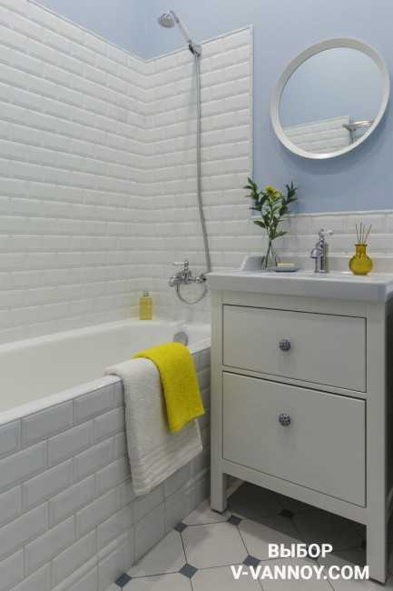 Дизайн ванной комнаты обязывает вас экспериментировать даже с уже проверенным материалом — посмотрите на фото, как можно удачно использовать столь популярную и модную плитку, как метро, для маленькой ванны. Кстати, вертикальное расположение и елочка — очевидные тренды года, на которые следует обратить пристальное внимание.