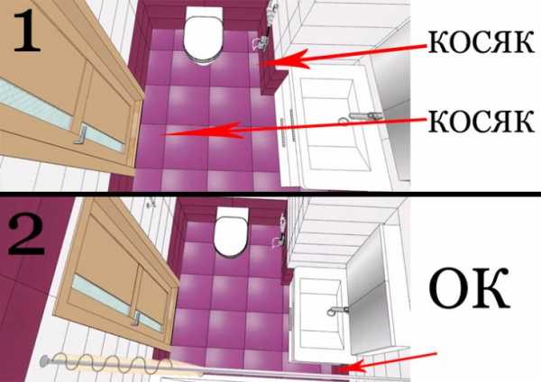 Прежде чем выбирать вариант раскладки плитки, следует оценить площадь ванной комнаты, высоту потолка и наличие недостатков, которые желательно скорректировать.