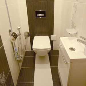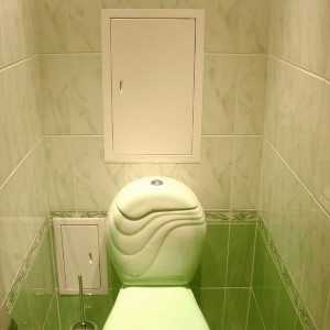 Ремонт и интерьер многих туалетов также не отличается большим разнообразием – на задней стенке размещены необходимые коммуникации, над туалетом висит шкафчик для химии. Иногда все коммуникации обшивают гипсокартоном и делают дверцы для доступа при ремонте или прочих работах, а для отделки и красивого внешнего вида производят отделку кафелем.