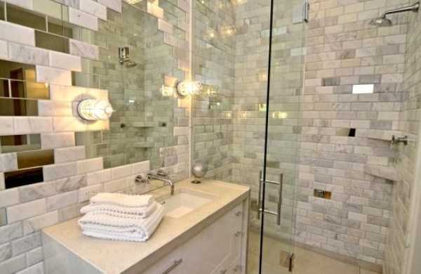 При желании можно оформить углы стен или другие фрагменты. Также оригинальным вариантом может стать облицовка зеркала.