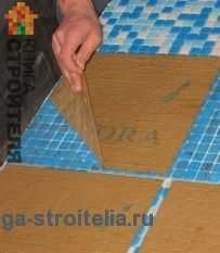 Π Π°Π·Π²Π΅Π΄ΠΈΡΠ΅ ΠΊΠ»Π΅ΠΉ ΠΈΠ»ΠΈ Π²ΠΎΡΠΏΠΎΠ»ΡΠ·ΡΠΉΡΠ΅ΡΡ Π³ΠΎΡΠΎΠ²ΡΠΌ. ΠΠ°ΡΠΈΠ½Π°ΠΉΡΠ΅ ΠΊΠ»Π΅ΠΈΡΡ ΠΏΠ»ΠΈΡΠΊΡ Ρ ΡΠ³Π»Π°. ΠΠ»Π΅ΠΉ Π½Π°Π½ΠΎΡΠΈΡΠ΅ ΡΠΎΠ½ΠΊΠΈΠΌ ΡΠ»ΠΎΠ΅ΠΌ Π² Π½Π°ΡΠ°Π»Π΅ ΡΠΎΠ²Π½ΠΎΠΉ ΡΡΠΎΡΠΎΠ½ΠΎΠΉ, Π·Π°ΡΠ΅ΠΌ, ΠΏΠΎΡΠ»Π΅ ΡΠΎΠ³ΠΎ ΠΊΠ°ΠΊ Π²ΡΡΠΎΠ²Π½ΡΠ΅ΡΠ΅ ΡΠ»ΠΎΠΉ, ΡΠΏΠ΅ΡΠΈΠ°Π»ΡΠ½ΡΠΌ ΡΠΏΠ°ΡΠ΅Π»Π΅ΠΌ Π½Π°Π½Π΅ΡΠΈΡΠ΅ Π±ΠΎΡΠΎΠ·Π΄Ρ. ΠΡΠΈΠ»ΠΎΠΆΠΈΠ² ΠΏΠ΅ΡΠ²ΡΠΉ Π»ΠΈΡΡ, ΡΡΠΎΠ²Π½Π΅ΠΌ Π²ΡΡΠΎΠ²Π½ΡΠΉΡΠ΅ Π΅Π³ΠΎ Π² Π²Π΅ΡΡΠΈΠΊΠ°Π»ΡΠ½ΠΎΠΉ ΠΈ Π³ΠΎΡΠΈΠ·ΠΎΠ½ΡΠ°Π»ΡΠ½ΠΎΠΉ ΠΏΠ»ΠΎΡΠΊΠΎΡΡΠΈ. ΠΡΠ»ΠΈ ΠΈΠ·Π½Π°ΡΠ°Π»ΡΠ½ΠΎ Π½Π΅ ΠΏΡΠΈΠΆΠΈΠΌΠ°ΡΡ ΠΎΡΠ΅Π½Ρ ΡΠΈΠ»ΡΠ½ΠΎ Π»ΠΈΡΡ ΠΊ ΡΡΠ΅Π½Π΅, ΠΎΠ½ Π΄ΠΎΡΡΠ°ΡΠΎΡΠ½ΠΎ ΡΠ²ΠΎΠ±ΠΎΠ΄Π½ΠΎ Π±ΡΠ΄Π΅Ρ Π΄Π²ΠΈΠ³Π°ΡΡΡΡ. ΠΠΎΡΠ»Π΅ Π²ΡΡΠ°Π²Π½ΠΈΠ²Π°Π½ΠΈΡ, ΡΠ΅Π·ΠΈΠ½ΠΎΠ²ΡΠΌ ΠΌΠΎΠ»ΠΎΡΠΎΡΠΊΠΎΠΌ ΠΈΠ»ΠΈ ΠΆΠ΅ Π΄Π΅ΡΠ΅Π²ΡΠ½Π½ΡΠΌ Π±ΡΡΡΠΊΠΎΠΌ, ΠΎΠ±ΡΡΠ½ΡΡΡΠΌ Π² ΠΌΡΠ³ΠΊΡΡ ΡΠΊΠ°Π½Ρ, ΠΏΠ»ΠΎΡΠ½ΠΎ ΠΏΡΠΈΠΆΠΌΠΈΡΠ΅ Π»ΠΈΡΡ ΠΏΠΎ Π²ΡΠ΅ΠΉ ΠΏΠ»ΠΎΡΠΊΠΎΡΡΠΈ. Π¨ΠΎΠ² ΠΌΠ΅ΠΆΠ΄Ρ ΠΏΠ»ΠΈΡΠΊΠ°ΠΌΠΈ Π½ΡΠΆΠ½ΠΎ ΠΎΡΡΠ°Π²Π»ΡΡΡ ΡΠ°ΠΊΠΎΠ³ΠΎ ΠΆΠ΅ ΡΠ°Π·ΠΌΠ΅ΡΠ°, ΠΊΠ°ΠΊ ΠΈ ΡΠ°ΡΡΡΠΎΡΠ½ΠΈΠ΅ ΠΌΠ΅ΠΆΠ΄Ρ ΠΊΡΡΠΎΡΠΊΠ°ΠΌΠΈ ΠΌΠΎΠ·Π°ΠΈΠΊΠΈ.